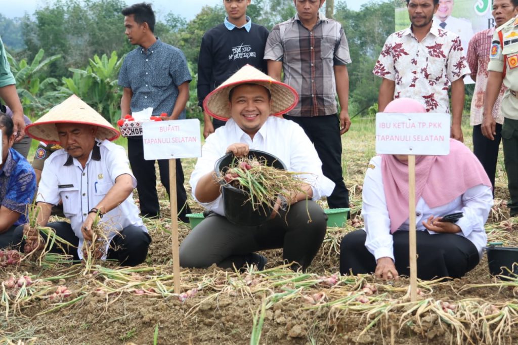 Bupati Tapsel Panen Perdana Bawang Merah Bersama Koptan Tunas Muda Arse