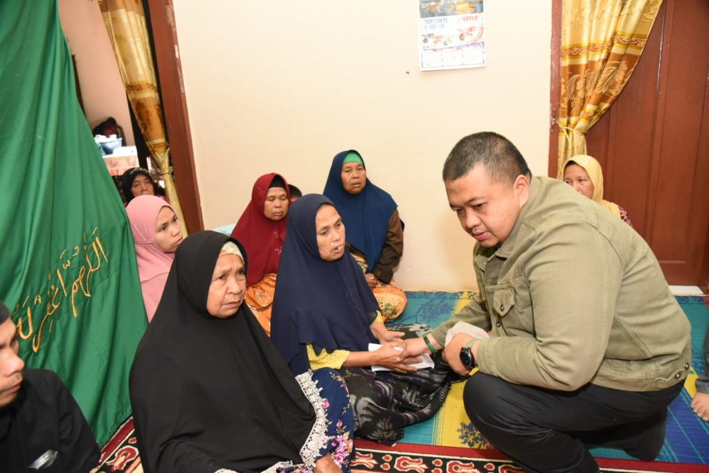 TAPSEL-Bupati Tapanuli Selatan (Tapsel), H Dolly Pasaribu bersama ketua TP PKK, Ny Rosalina Dolly Pasaribu, didampingi Kepala Dinas Sosial dan Kepala BPBD memberikan santunan kepada keluarga korban longsor hingga meninggal dunia di Kecamatan Angkola Barat, Minggu (20/11).