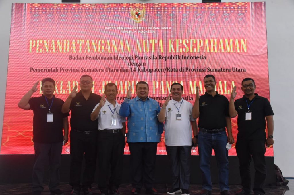 Adapun tujuan penandatanganan nota kesepahaman antara Badan Pembina Ideologi Pancasila (BPIP) dengan Pemerintah Provinsi Sumatera Utara (Sumut) dan 14 kabupaten kota di Provinsi Sumatera Utara adalah untuk mendorong pelaksanaan sosialisasi, pembudayaan dan penggalian mutiara Pancasila pada kearifan lokal dalam rangka pembinaan ideologi Pancasila maupun mendorong pengembangan kerjasama dalam rangka pengamanan nilai-nilai Pancasila.