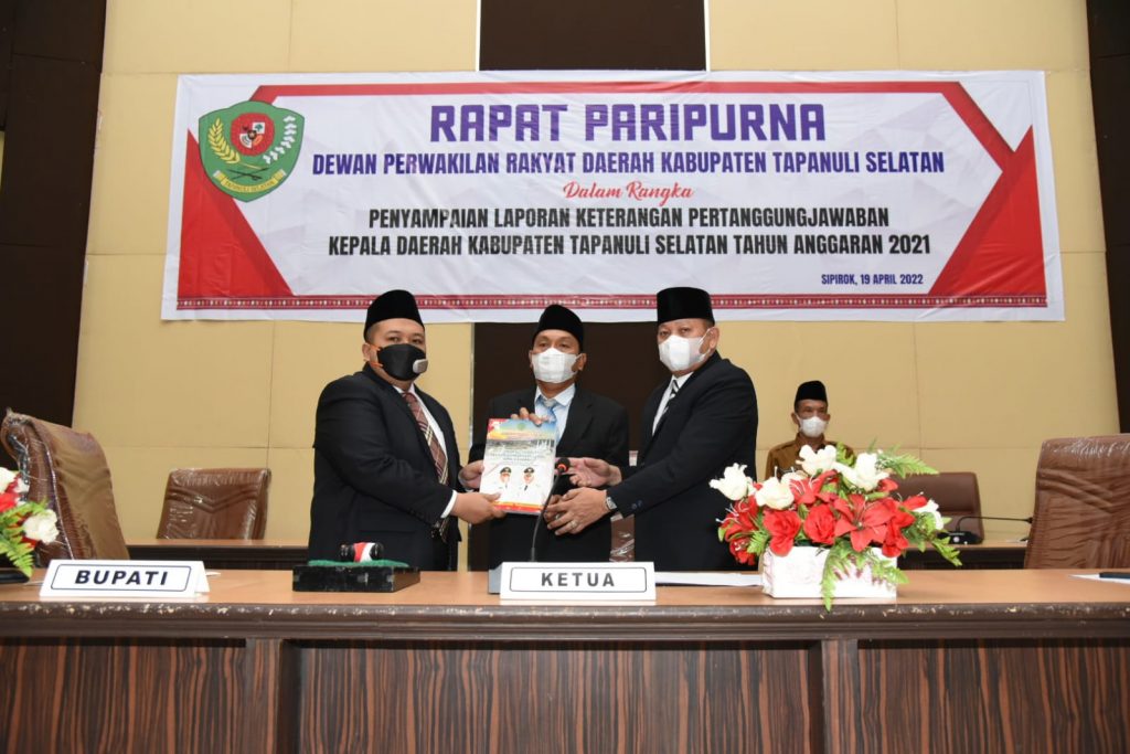 Hal itu di sampaikan Bupati pada Rapat Paripurna Dewan Perwakilan Rakyat Daerah (DPRD) Kabupaten Tapsel dalam rangka Penyampaian Nota Pengantar Laporan Keterangan Pertanggungjawaban (LKPJ) Kepala Daerah Tahun Anggaran 2021 di ruang sidang paripurna DPRD Tapsel, Jalan Prof Lafran Pane, Sipirok, Selasa (19/4).