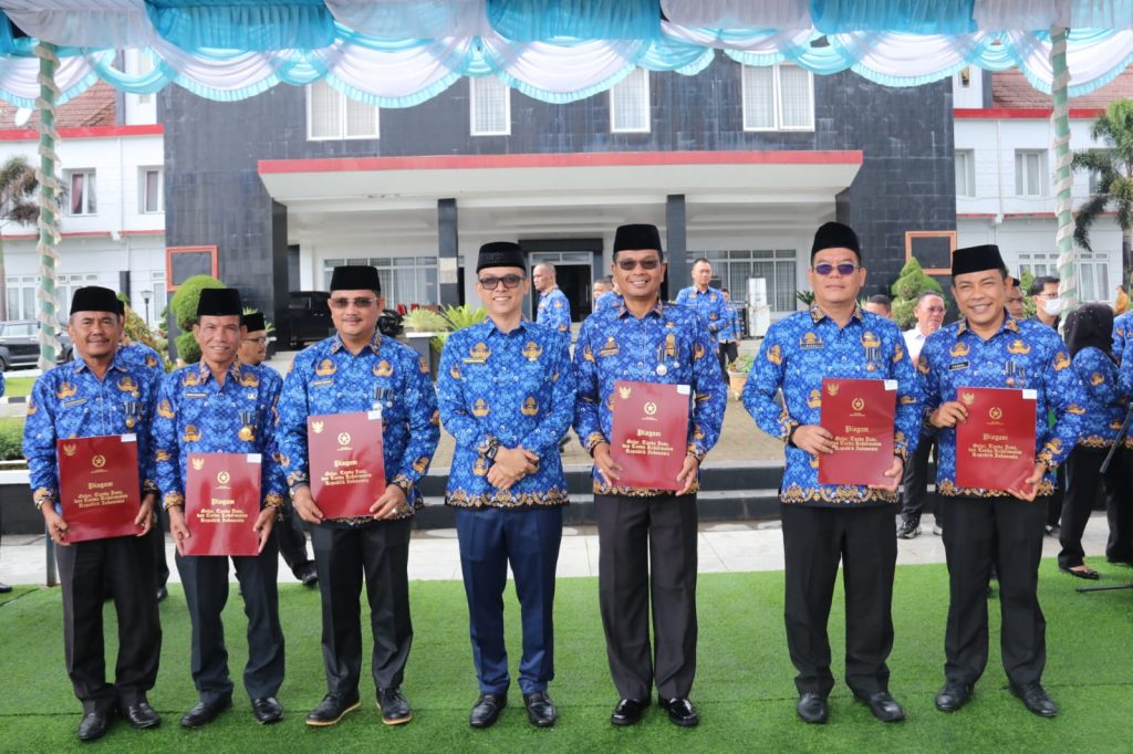 Lalu Ahmad Ibrahim Lubis, S.Sos, MM dan Hamdy S Pulungan, S.Sos, MM sebagai penerima satyalancana 20 tahun. Chairul Rizal Lubis, ST, MM dan AM Fadhil Harahap, SIP, MH sebagai penerima satyalancana 10 tahun. Setelah itu Pj Sekda juga menyerahkan santunan jaminan kematian (JKM) dari BPJS Ketenagakerjaan kepada ahli waris Istri dari Alm. Muhammad Saleh dan Istri Alm. Maruhum Hot Taufiq masing-masing mendapatkan Rp 42juta.