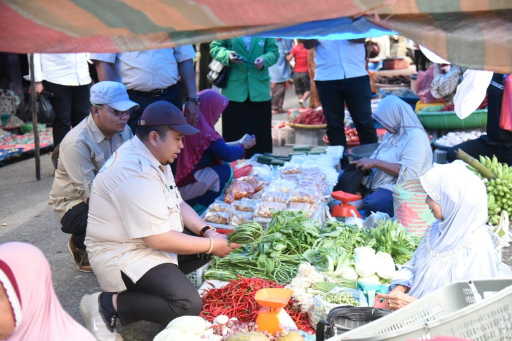 TAPSEL-Mendadak Bupati Tapanuli Selatan (Tapsel) H Dolly Pasaribu berbelanja di Pasar Tradisional "Poken Arba" Kecamatan Marancar, Kabupaten setempat, pada Rabu (1/3).