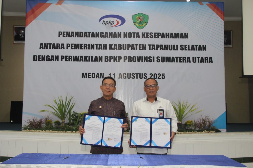 Medan – Pemerintah Kabupaten Tapanuli Selatan (Pemkab Tapsel) dan Perwakilan Badan Pengawasan Keuangan dan Pembangunan (BPKP) Provinsi Sumatera Utara (Sumut) menandatangani nota kesepahaman (MoU) untuk memperkuat akuntabilitas dan tata kelola pemerintahan daerah.