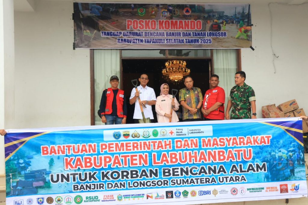 Tapanuli Selatan – Pemerintah Kabupaten Tapanuli Selatan (Tapsel) menerima bantuan kemanusiaan dari Pemerintah Kabupaten Labuhan Batu untuk masyarakat yang terdampak banjir dan tanah longsor. Bantuan tersebut diserahkan di Posko Komando Tanggap Darurat Banjir dan Tanah Longsor Kabupaten Tapanuli Selatan, di Gedung Serba Guna Sarasi, Komplek Perkantoran Pemkab Tapsel, Sipirok, Kamis (11/12/2025).