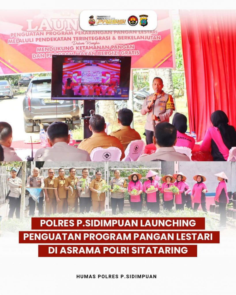 PADANGSIDIMPUAN – Kapolres Padangsidimpuan, Dr Wira Prayatna, SH, SIK, MH, melaunching penguatan program pangan lestari di Asrama Polri Sitataring, Jalan Stn Mhd Arif, Kelurahan Batang Ayumi Julu, Senin (24/02/2025).