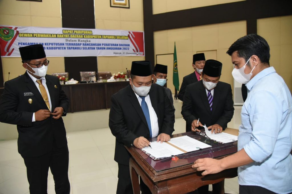 Rancangan Peraturan Daerah (Ranperda) tentang Anggaran Pendapatan dan Belanja Daerah (APBD) Kabupaten Tapanuli Selatan (Tapsel) tahun anggaran (TA) 2022, telah sah ditetapkan menjadi Peraturan Daerah (Perda). Pengambilan keputusan tersebut digelar di ruang sidang paripurna DPRD setempat, Jalan Prof. Lafran Pane, Sipirok, Jumat (31/12/2021) sore.