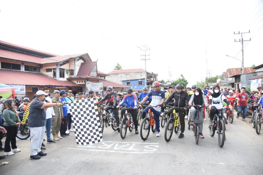 TAPSEL-Dalam rangka menyambut hari jadi Kabupaten Tapanuli Selatan yang ke-72, Bupati Dolly Pasaribu melepas 700 peserta Fun Bike dari garis start Pasar Huta Tonga menuju Finish di Lapangan Sarasi, Kelurahan Bintuju, Kecamatan Angkola Muaratais pada Minggu (6/11) pagi.