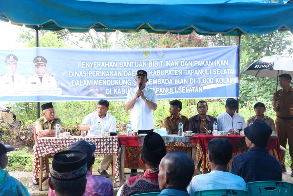 Tapanuli Selatan – Pemerintah Kabupaten Tapanuli Selatan (Pemkab Tapsel) melalui Dinas Perikanan terus menunjukkan komitmennya dalam memperkuat ketahanan pangan dan mendorong kemandirian ekonomi masyarakat. Salah satu langkah nyata tersebut adalah melalui peluncuran program Swasembada Ikan 1.000 Kolam, yang secara resmi dilaksanakan dengan penyerahan bantuan bibit dan pakan ikan kepada kelompok pembudidaya di Desa Lancat Julu, Kecamatan Arse, Senin (16/6/2025).