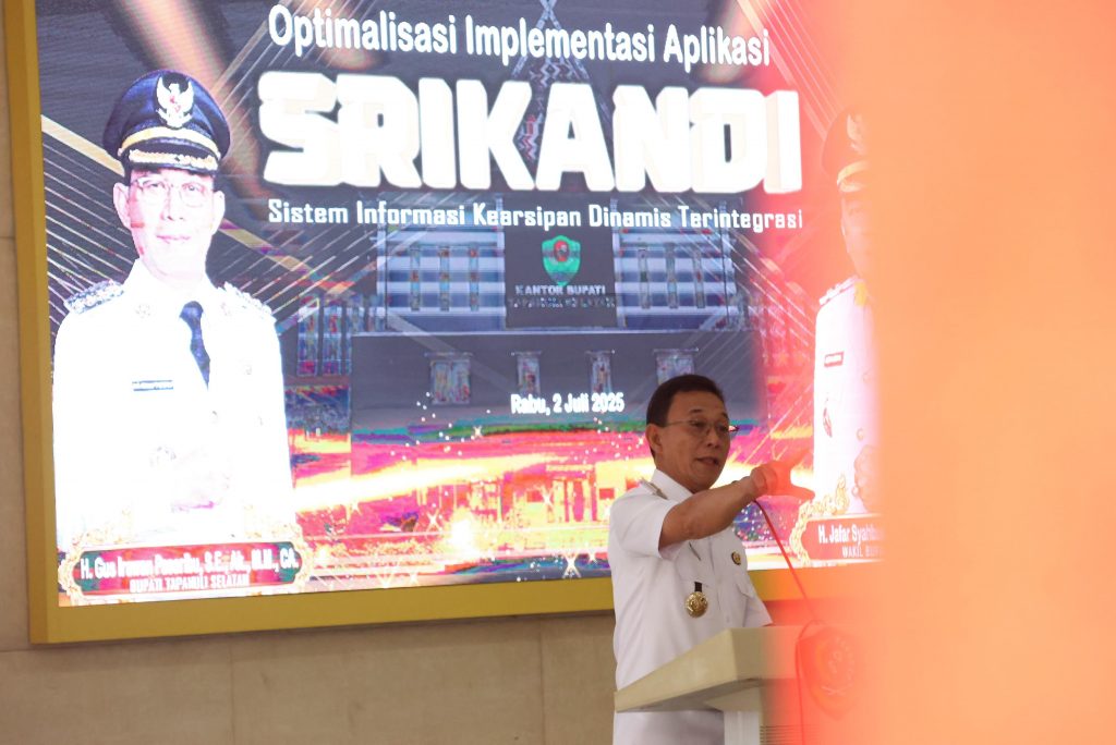 TAPANULI SELATAN – Pemerintah Kabupaten Tapanuli Selatan (Pemkab Tapsel) terus memperkuat komitmen dalam mendukung digitalisasi birokrasi melalui Sistem Pemerintahan Berbasis Elektronik (SPBE). Hal ini diwujudkan dengan penyelenggaraan kegiatan optimalisasi implementasi Aplikasi Srikandi yang resmi dibuka oleh Bupati Tapsel, Gus Irawan Pasaribu, pada Rabu (2/7/2025), di Aula Sarasi, Lantai III, Kantor Bupati Tapsel, Sipirok.