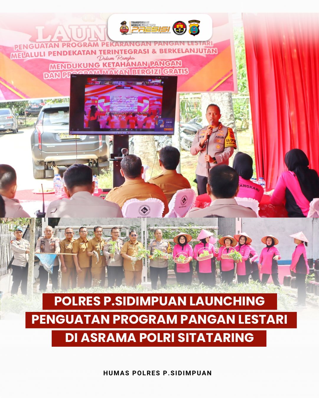 PADANGSIDIMPUAN – Kapolres Padangsidimpuan, Dr Wira Prayatna, SH, SIK, MH, melaunching penguatan program pangan lestari di Asrama Polri Sitataring, Jalan Stn Mhd Arif, Kelurahan Batang Ayumi Julu, Senin (24/02/2025).