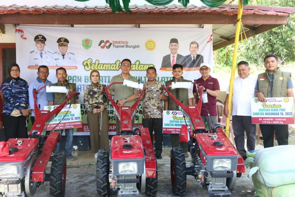Bantuan tersebut meliputi benih padi varietas Mekongga sebanyak 22.080 kilogram untuk total 552 hektare lahan, serta tiga unit traktor quick untuk tiga kelompok Brigade Pangan: BP Harsim Desa Harean (170 ha), BP Sumber Tani Desa Aek Kahombu (200 ha), dan BP Karya Tani Desa Aek Kahombu (182 ha).